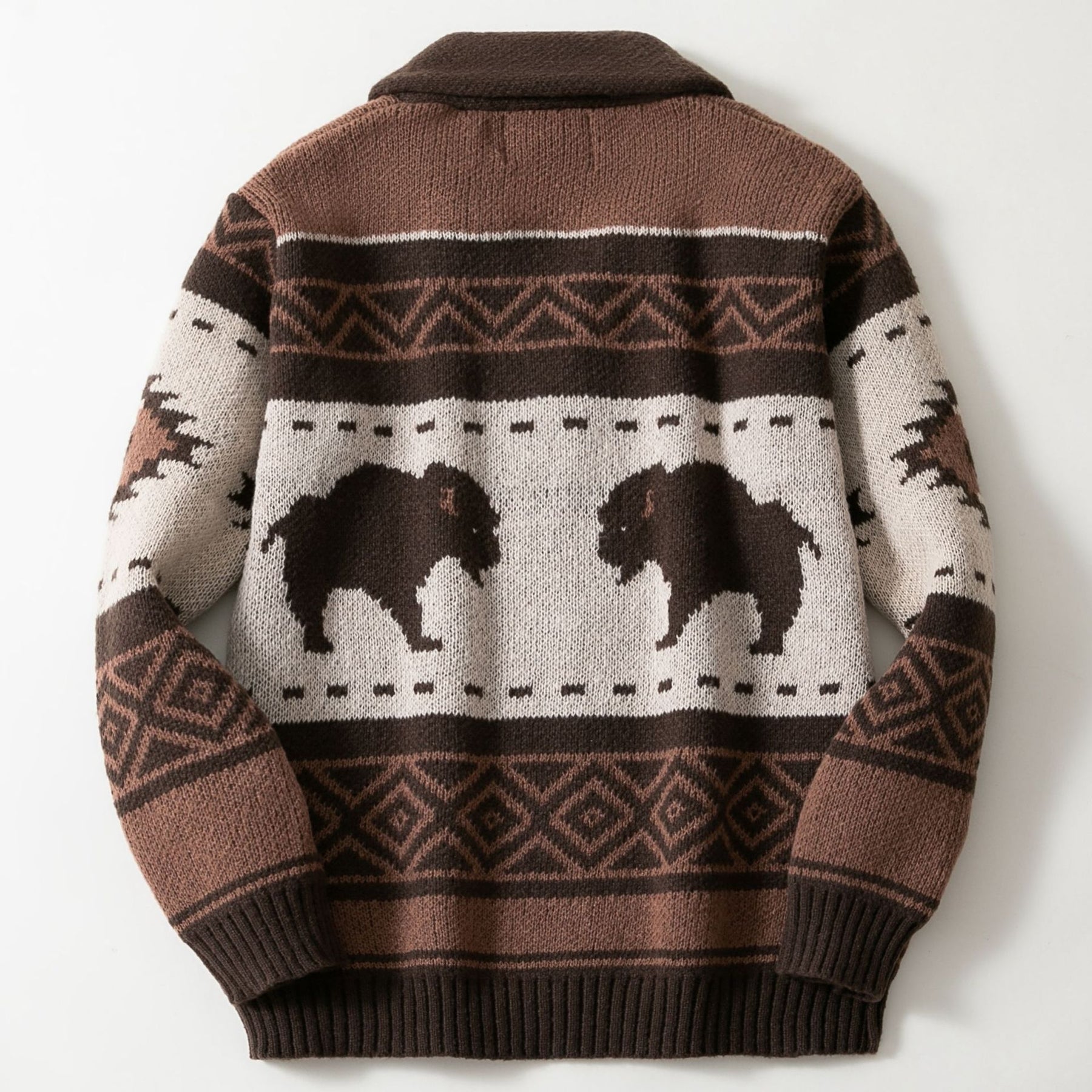 Men's European And American Retro Jacquard Knit Sweater Autumn And Winter Thickened Cardigan